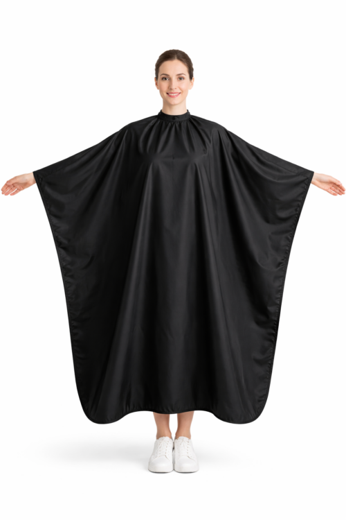 - Die Färbeschürze hat am Nacken einen Klick-Schließmechanismus. Dadurch lässt sie sich besonders schnell an- bzw. ablegen.